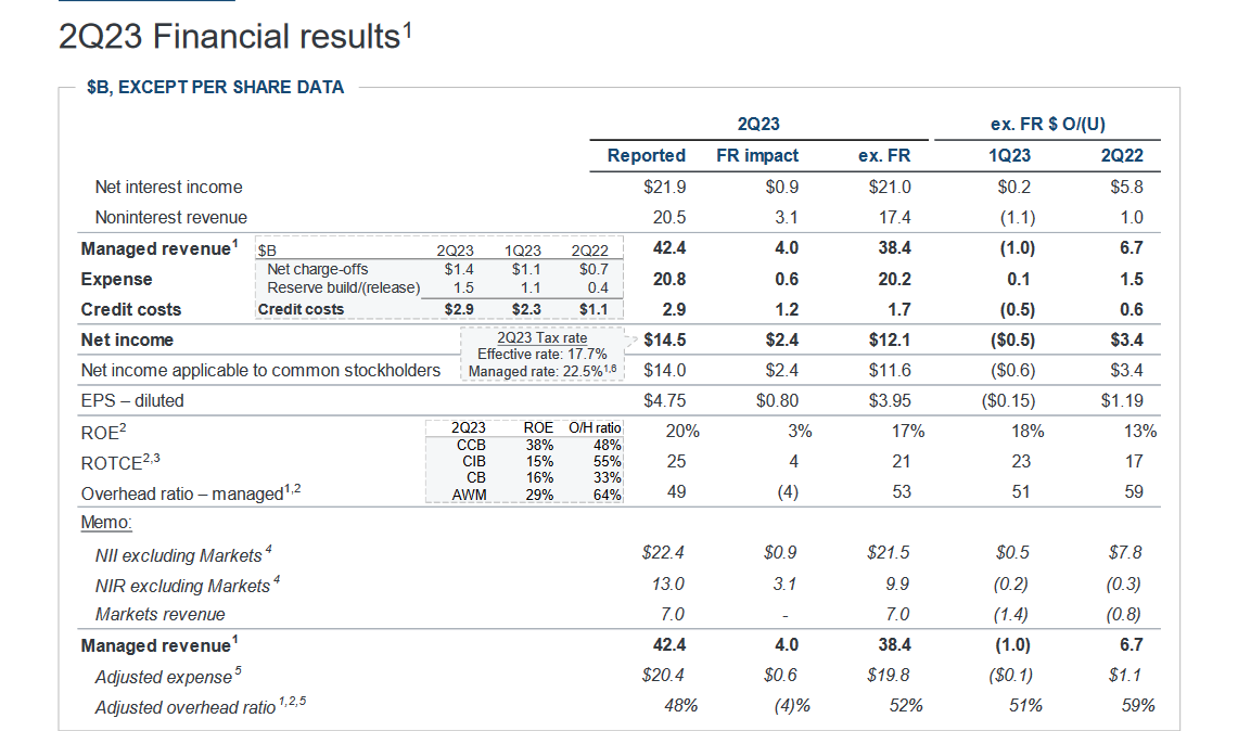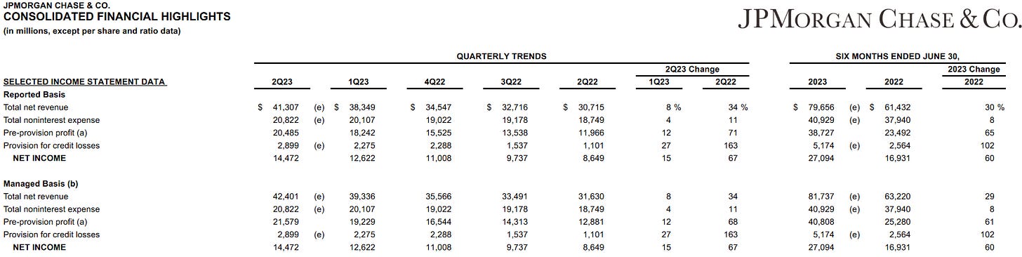 $14,472 Million in 2Q 2023 net income (with First Republic) is only $1.9 Billion more than the $12,622 Million from 1Q 2023 (without First Republic).