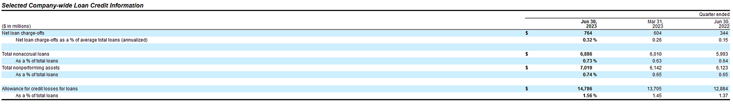 During the second quarter, JPMorgan increased its provisions for credit losses by $624 Million. That is compared to a $13 million decrease during the first quarter, and the largest provision for credit losses since the fourth quarter of 2022, which had a provision made of $751 Million.