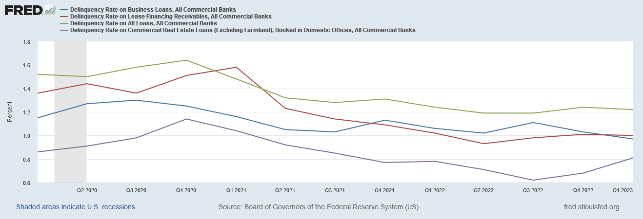At least as of the first quarter of the year, business loan delinquencies are largely in decline.