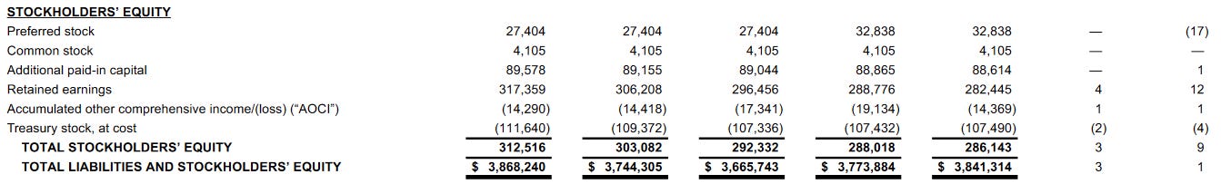 However, not every part of JPMorgan’s posted results are negative. Unlike SVB and even First Republic, JPMorgan appears to have made headway in unloading toxic portfolios of securities, based on their “Accumulated Other Comprehensive Income/(Loss)”.