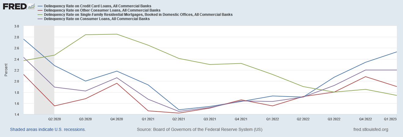 The delinquency rates on consumer loans, however, are not quite as rosy a picture.