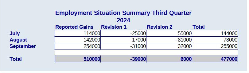 What job growth did the Employment Situation Summary Reports for July, August, and September of 2024 report? 477,000 jobs.