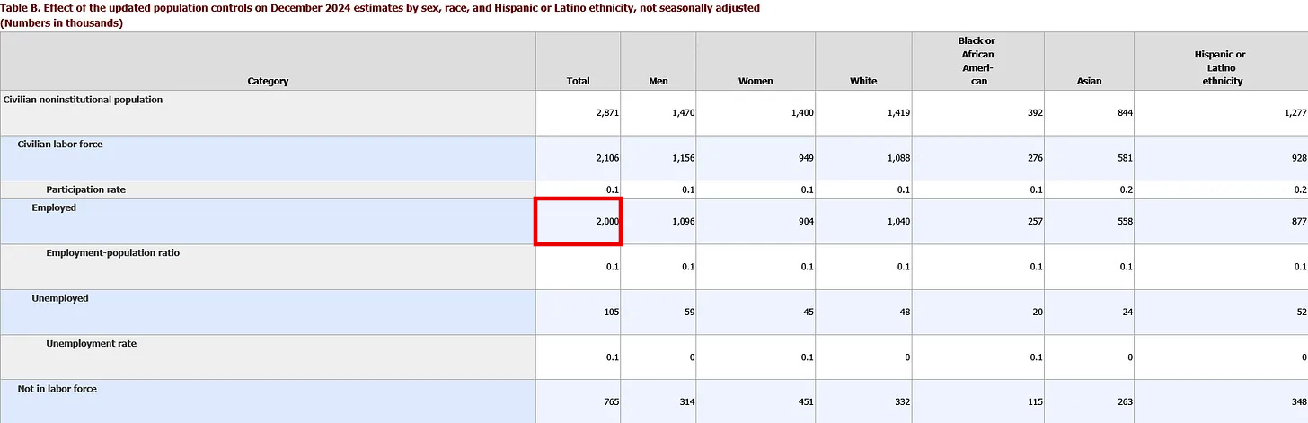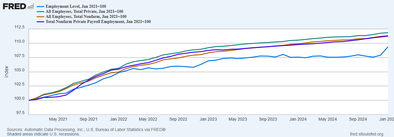 According to the January report, during 2024 the Household Survey undercounted the Employment Level by a net of 2,000,000 jobs, which it then adds into the January 2024 data.