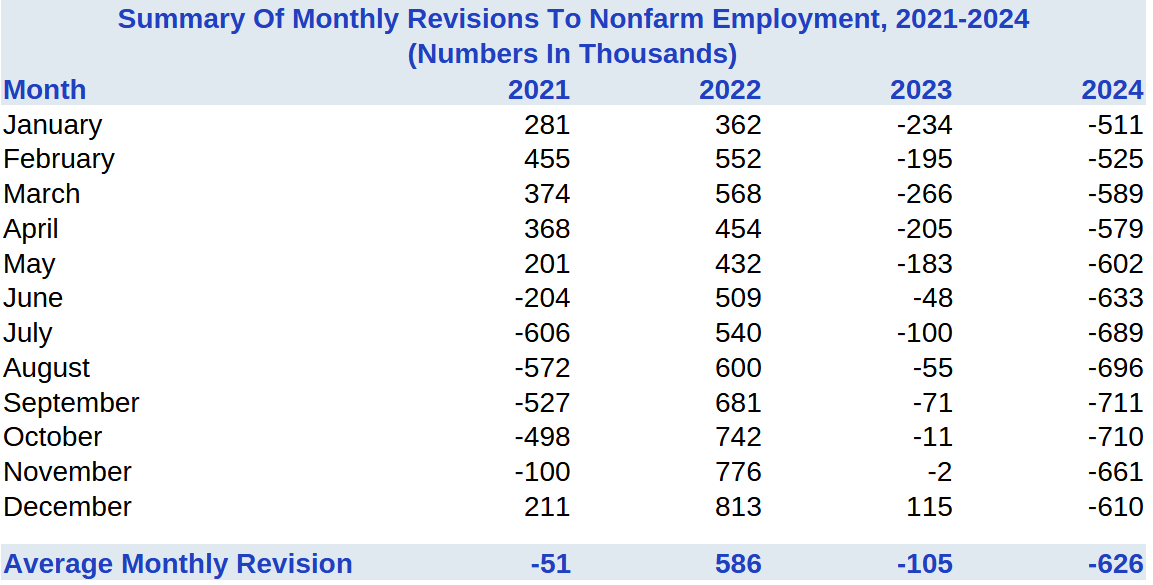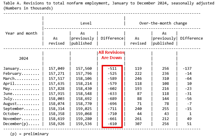 Further degrading the January report is the sobering fact that in 2024 the revisions for each month were negative.