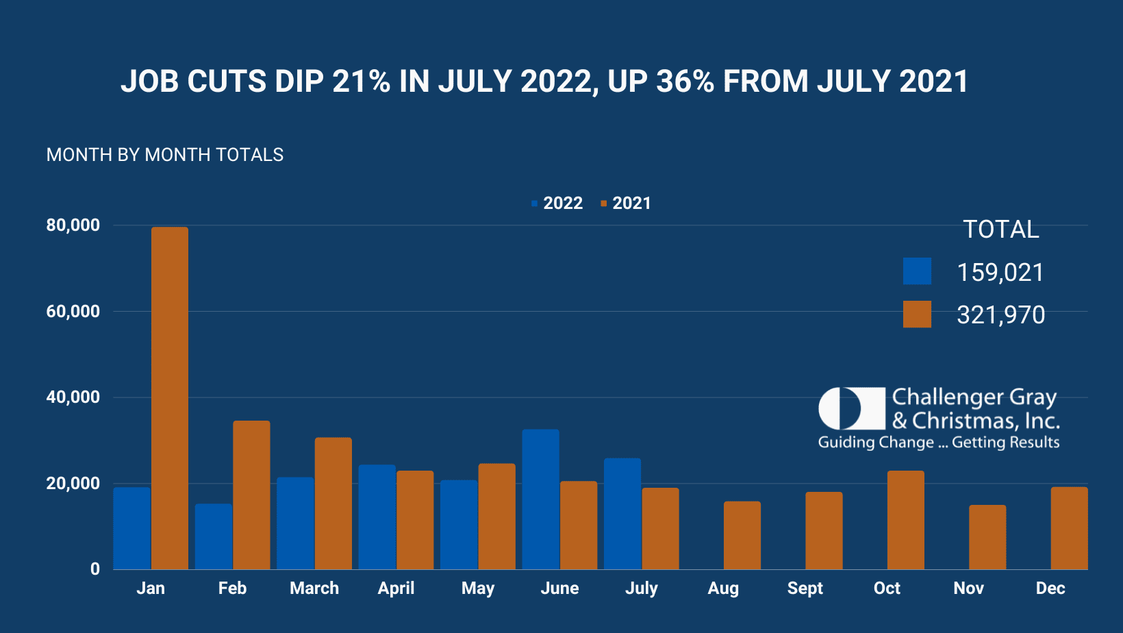 While the current month shows an improvement in the layoffs picture, the July Job Cuts Report still shows elevated job loss over 2021.