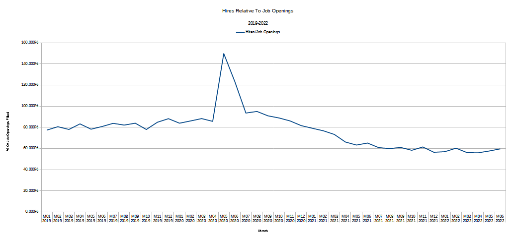 How do 528,000 jobs get created when the number of hires relative to the number of job openings has been below 60% for the past four months?