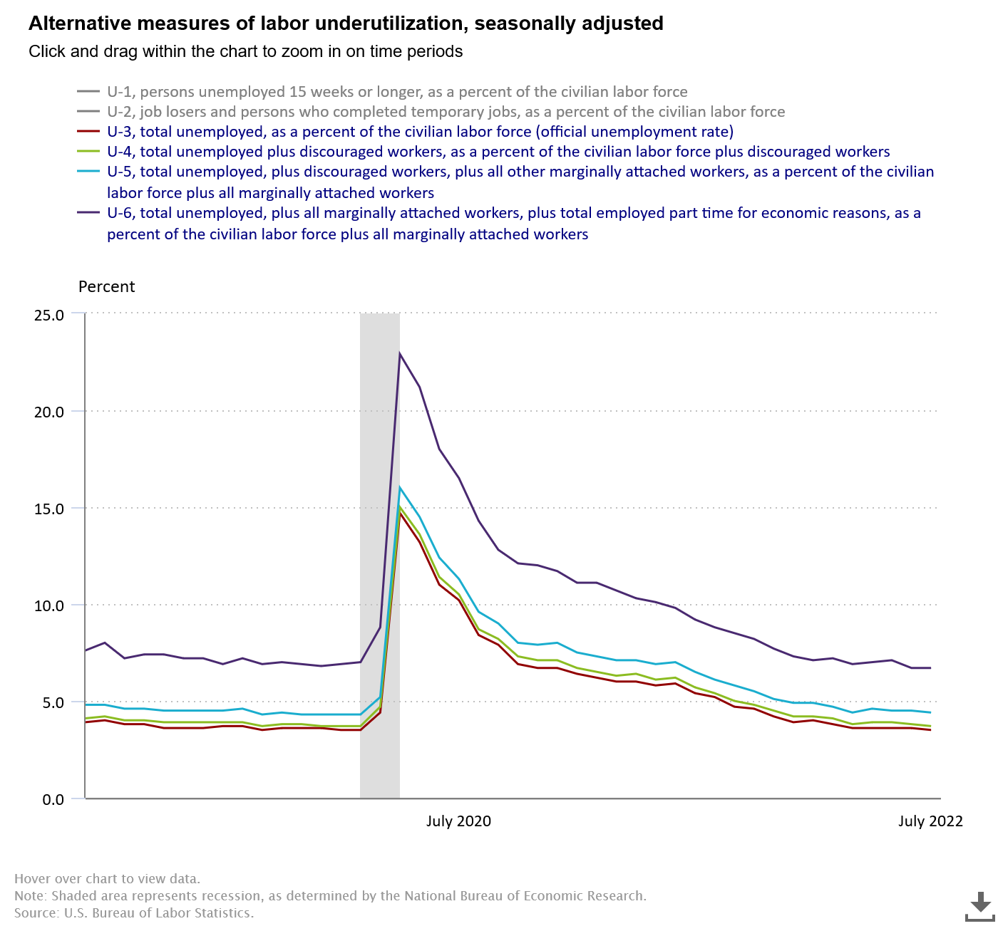 Neither the June JOLTS report nor the July Employment Situation Report explains these variances among the different labor metrices.