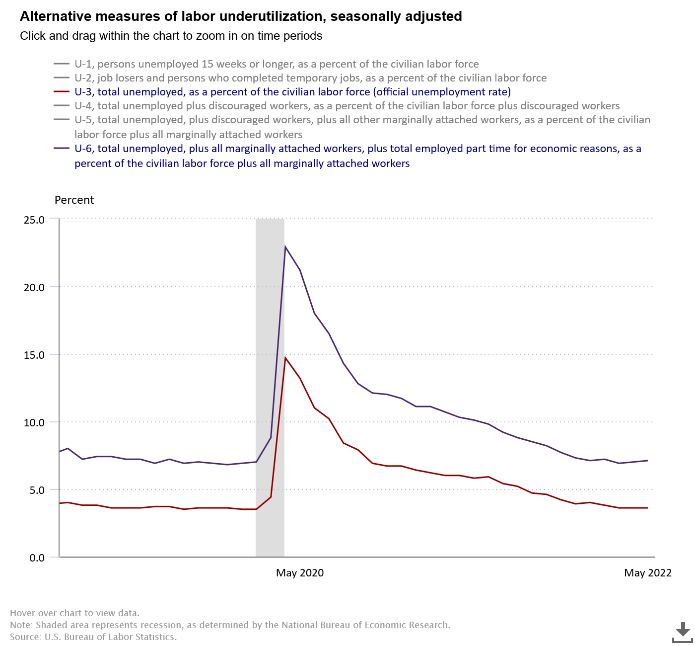 There were 1.4 million permanent job losers in May, roughly the same as in April.