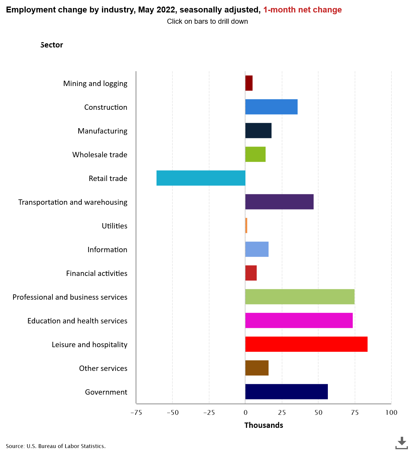 Total nonfarm payroll employment rose by 390,000 in May, and the unemployment rate remained at 3.6 percent, the U.S. Bureau of Labor Statistics reported today. Notable job gains occurred in leisure and hospitality, in professional and business services, and in transportation and warehousing. Employment in retail trade declined.