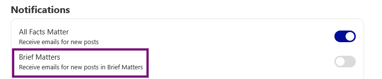 If you wish to receive these to your inbox simply add “Brief Matters” to the list of subscribed sections on your account by toggling the appropriate item.