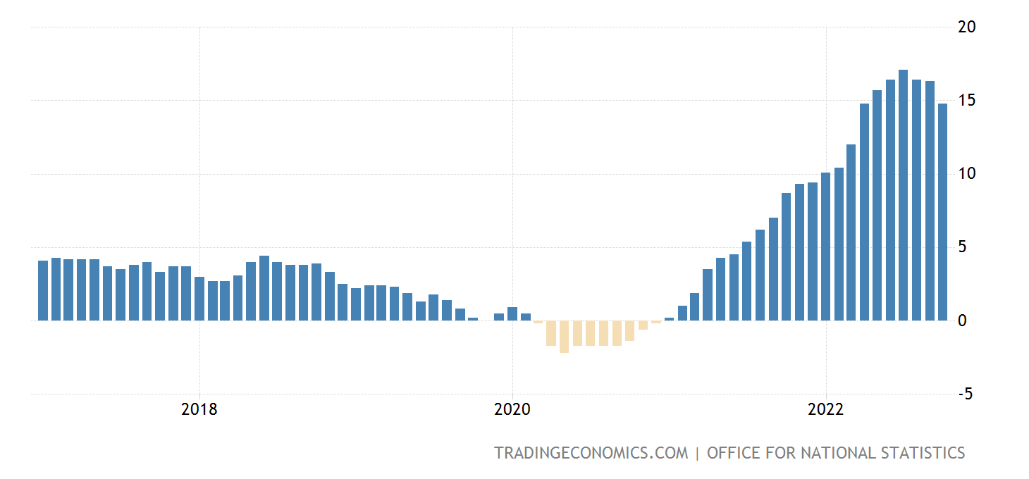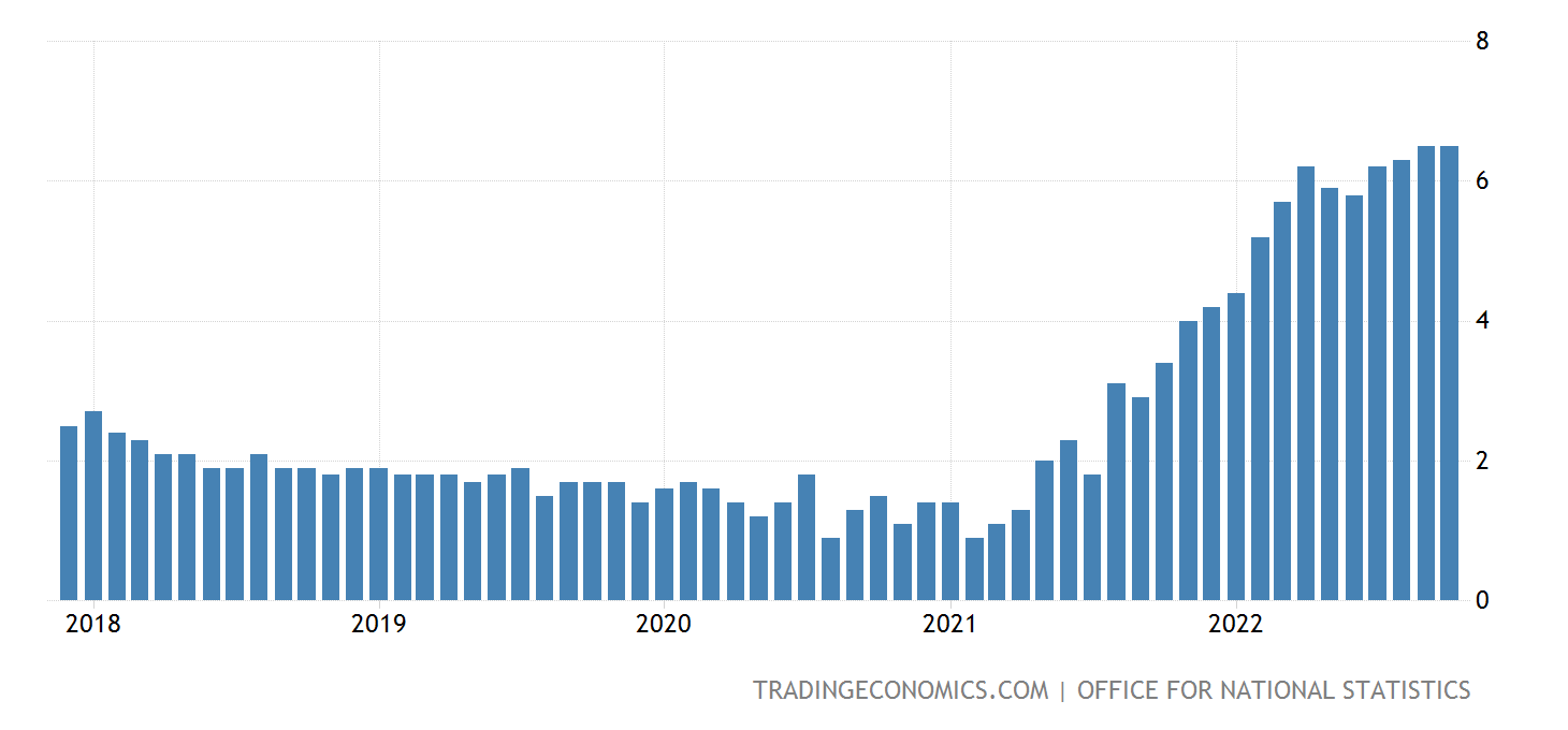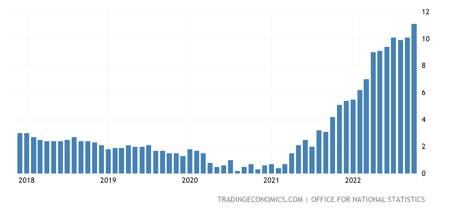 Inflation has been a growing economic problem in the UK since early 2021 (thus proving that the media narrative where all economic ills are blamed on Putin and his war in Ukraine substantially false; the war in Ukraine has been an inflationary factor in 2022, but fully half of the rise in inflation predates Putin’s invasion in February).