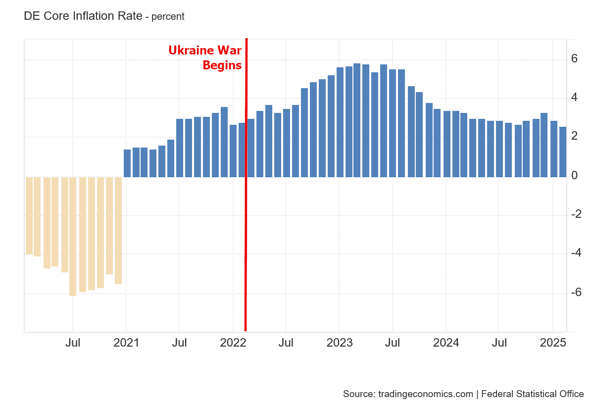Despite the dislocations from sanctions, Germany’s inflation now is lower than it was at the start of the war in Ukraine.