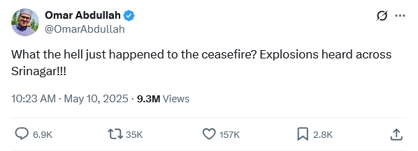 Other than Omar Abdullah’s X-posted video and other reports of explosions in and around Jammu and Srinigar, it is unclear how extensive any potential ceasefire violations are. There are, as of this writing, no confirmations of any actions by India which could be counted as a violation of the ceasefire agreement.