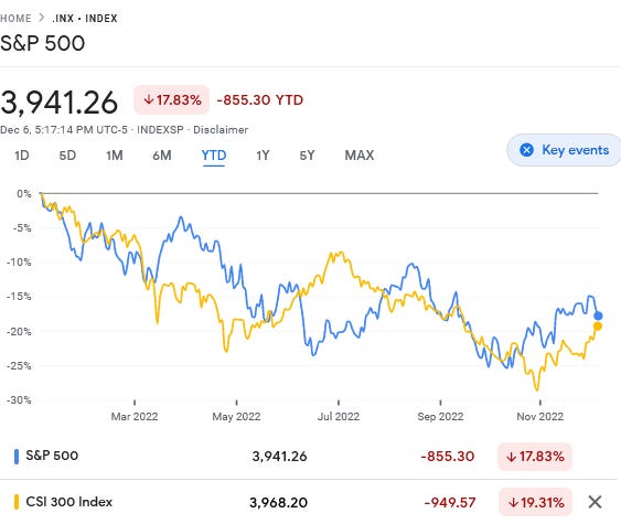 Moreover, the decline has outpaced the stock market downturns in the US, with the CSI 300 index turning a worse performance for China than the S&P 500 index has for the United States.