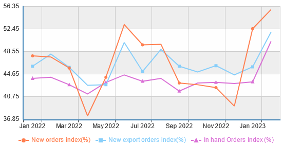 In February, new order growth appeared to be ascendant, and was taking the Chinese economy with it.