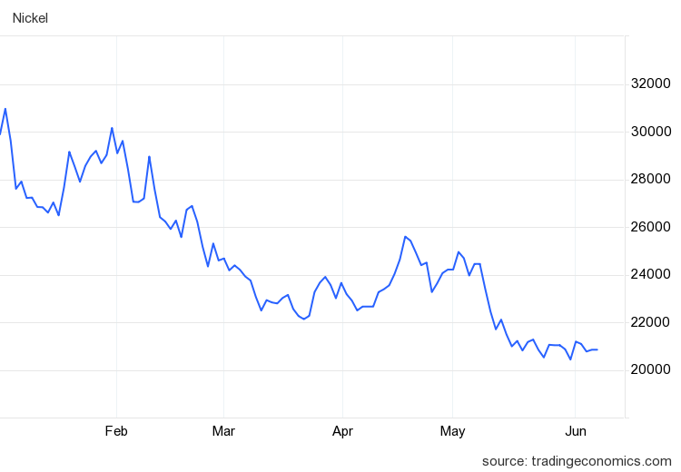 Nickel prices have also been trending down.