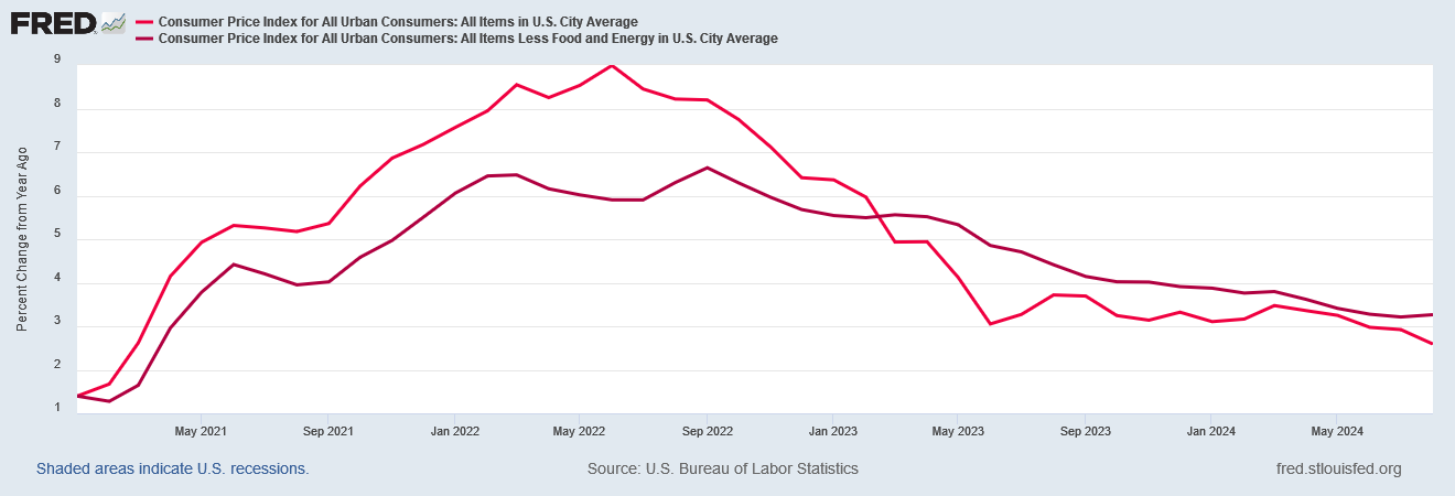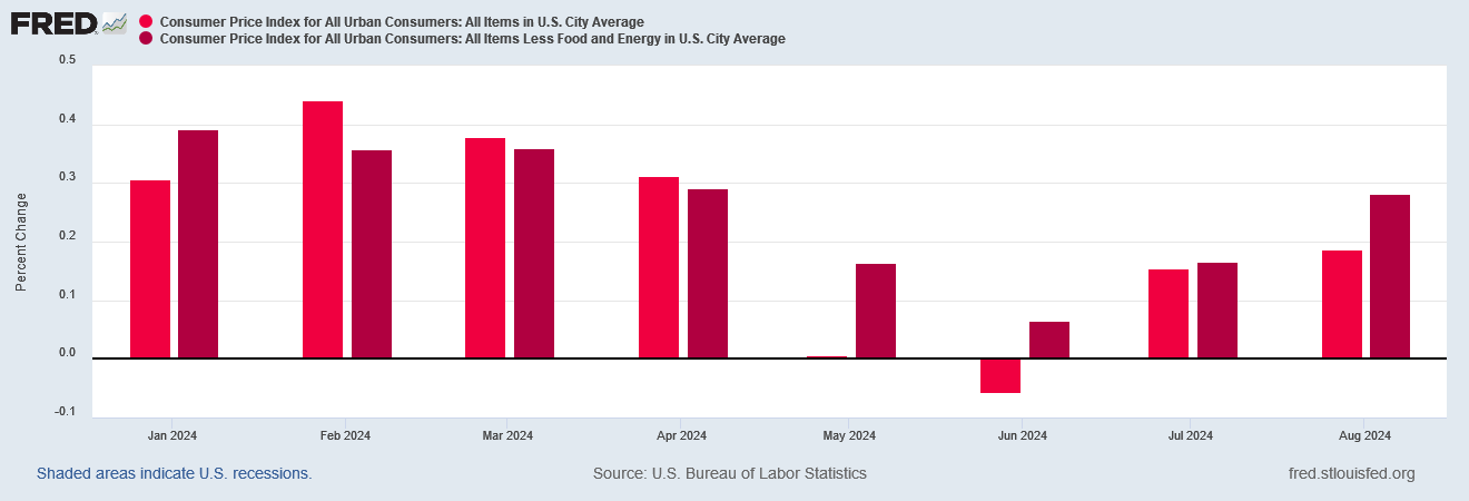 When we look at the headline and core consumer price indices, and their percent changes month on month for 2024, a somewhat different picture emerges.