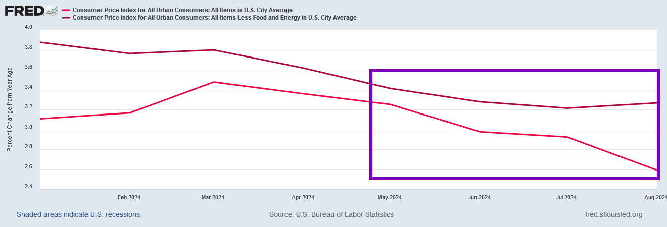 We should also note that energy price deflation eased in August. Even though energy prices still declined overall, they declined less in August than they had in earlier months. Effectively, this mutes the impact of energy price deflation at least for the current month.