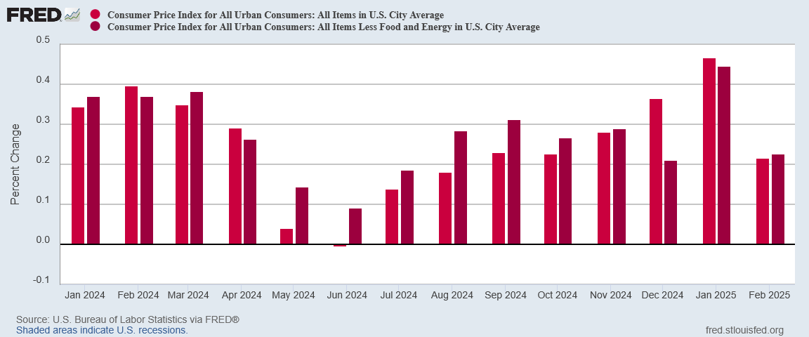 The Consumer Price Index for All Urban Consumers (CPI-U) increased 0.2 percent on a seasonally adjusted basis in February, after rising 0.5 percent in January, the U.S. Bureau of Labor Statistics reported today. Over the last 12 months, the all items index increased 2.8 percent before seasonal adjustment.