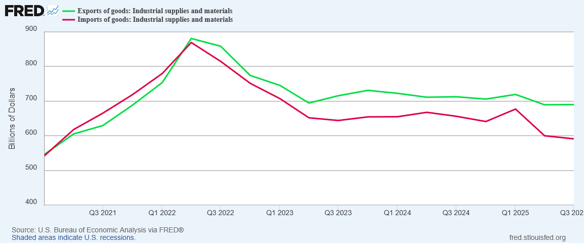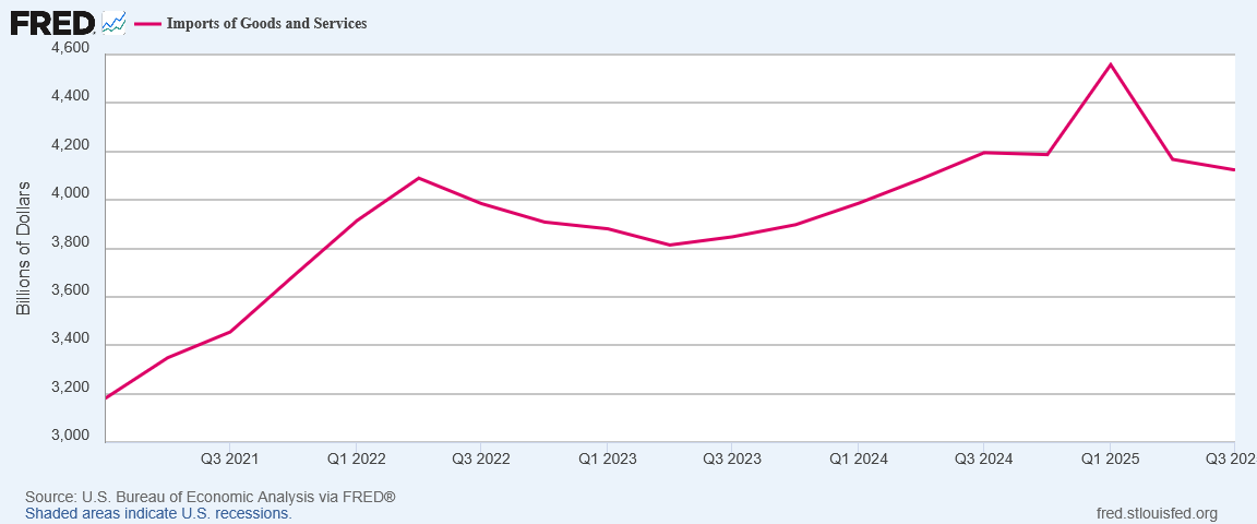 One factor we should consider is reduced imports. Aside from the first quarter of 2025, when there was demonstrable front loading of imports in anticipation of the Liberation day tariffs, imports had actually been starting to decline starting in 2024.