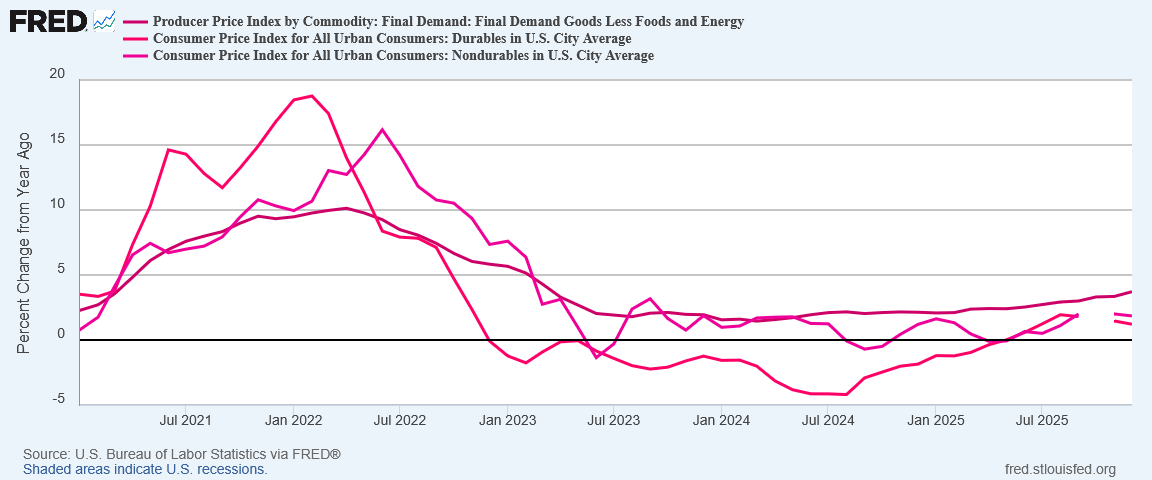 This tracks with the report that factory gate inflation overall was less in 2025 than in 2024. If tariffs were a primary factor in pushing up producer prices, the overall inflation rate for 2025 would be greater than in 2024.