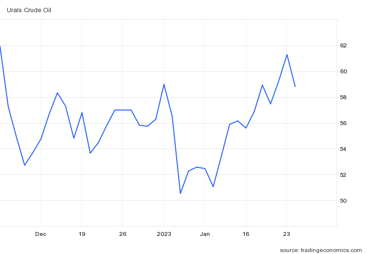 It should be noted, however, that since January 10, the spot price of Urals crude has been steadily rising, and on January 23 actually closed above the price cap, at $61.28/Bbl.