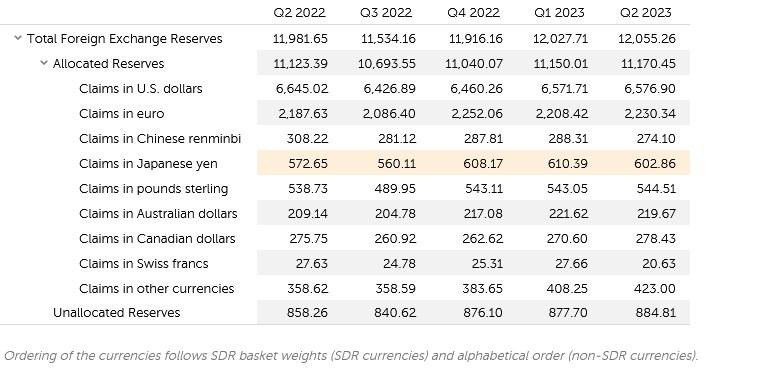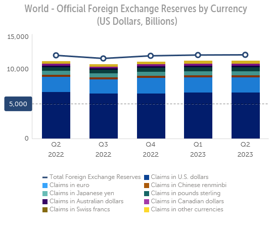 Looking at the breakdown by quarter, we also see that the dollar’s ratio among global reserve currencies has been largely stable for several quarters.