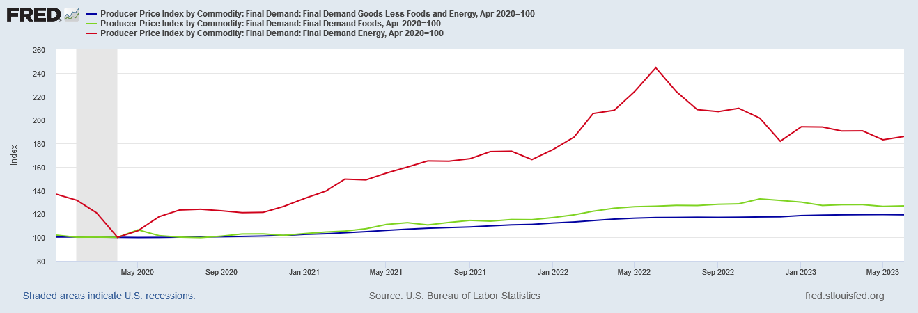 If we drill into the Final Demand index we can see that the components either plateaued or declined outright during the spring of 2022.