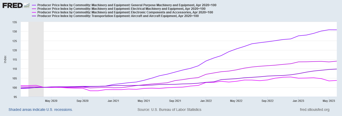 Resetting the Producer Price Indices to the end of the 2020 recession helps to highlight the plateau phenomenon.