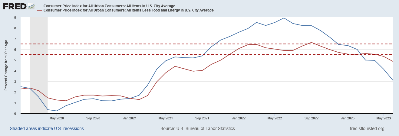 It is worth noting that in this same general time frame we see core consumer price inflation (CPI less food and energy) begin fluctuating in the band 6%±0.5%.