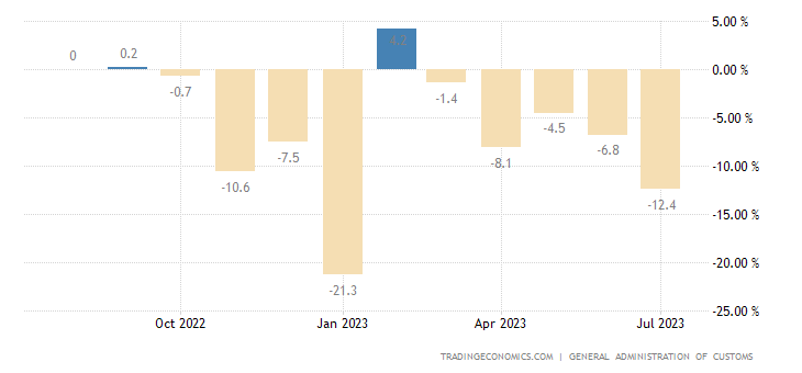 Nor was the CPI data the only bad news China has received. On Tuesday, it published its latest data on exports and imports—and both declined in July by double digits.