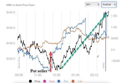 As shown in the chart below, which in addition to the S&P in black also shows put (blue) and call (orange) deltas, a massive put seller suddenly appeared (which via the negative gamma feedback loop also means dealers suddenly reverse from selling S&P futures to buying) just around noon, that was responsible for the slowdown in dealer selling and subsequent reversal, as a huge short squeeze kicked in and sent stocks sharply higher for the rest of the day.