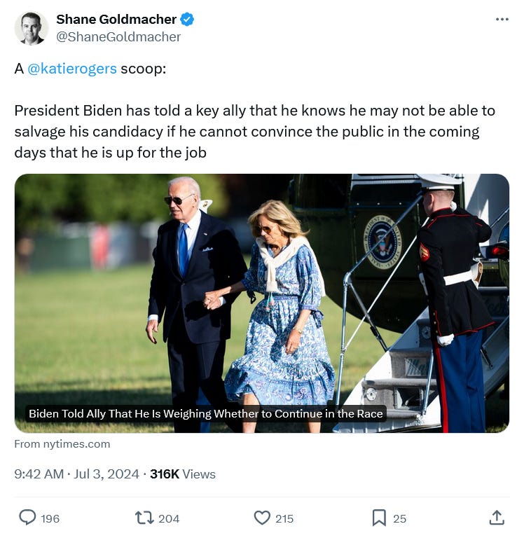 Yes, the media narratives are applying pressure on Joe Biden and his inner circle to drop out of the race—and yes, that raises the possibility that Biden may drop out.
