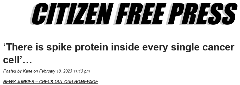One of the more alarming statements Dr. Cole made during that interview was that mRNA spike proteins could be found throughout numerous cancer biopsies he had reviewed as a consulting pathologist. That snippet of the show made it onto several Twitter feeds, and was picked up by the news aggregation site Citizen Free Press.