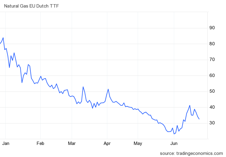As if to confirm the grim outlook, the price of Brent crude continues to move largely downward, as it has for the past six months, despite production cuts by Russia, OPEC, and Saudi Arabia.