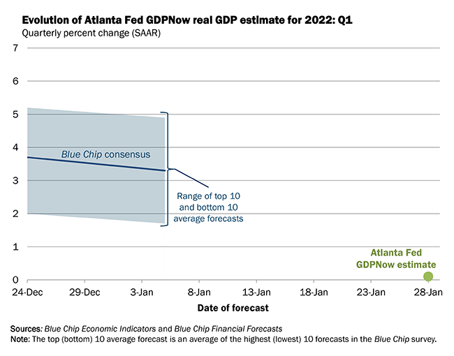 The Atlanta Federal Reserve has released its latest GDPNow forecast for how the economy will fare in the first quarter of 2022—not well.