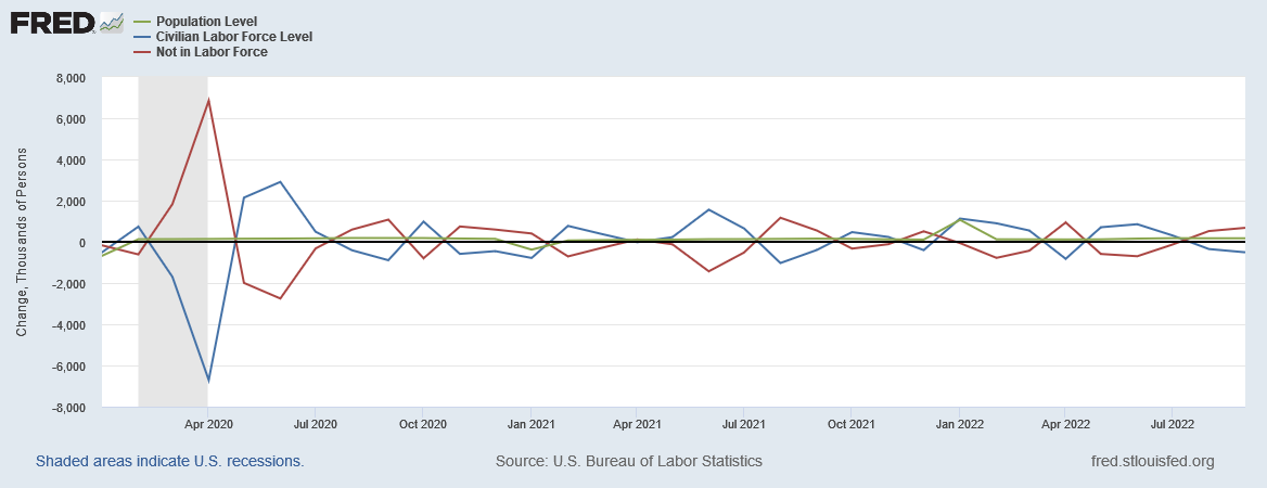 Whether due to seasonal influences, Federal Reserve interest rate hikes, or other macroeconomic forces, for a significant part of 2022 to date an increasing number of workers are apparently “opting out” of working. Such shifts are again more indicative of a cooling labor market rather than a hot one.