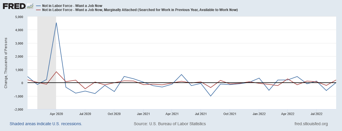 While the text says “little changed”, the data says those not in the labor force who want a job now has risen—by about 207,000, for those who have sought employment within the past year.