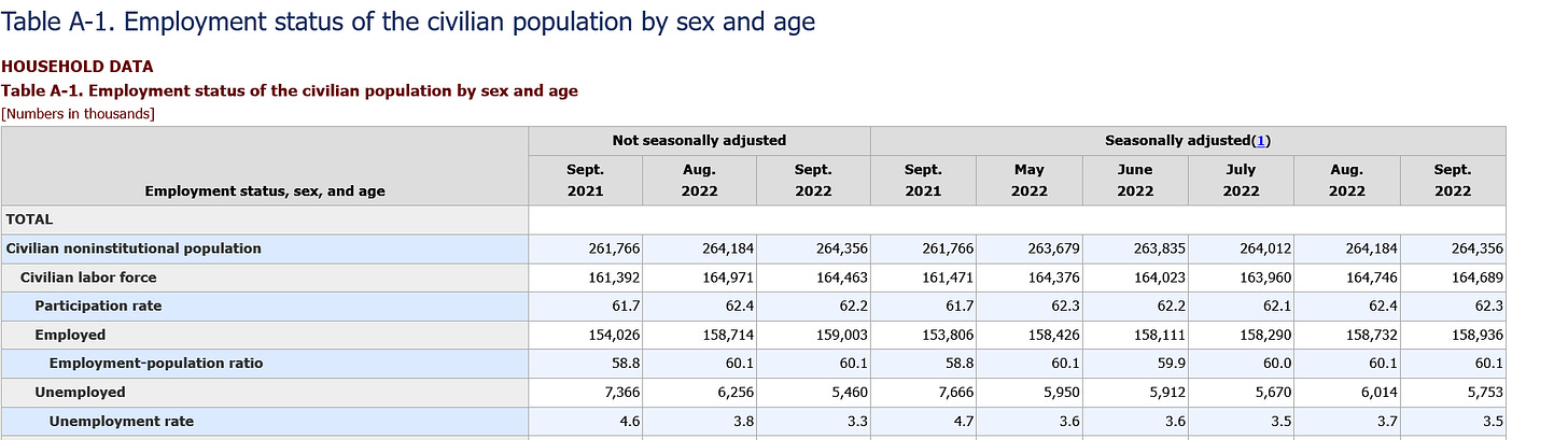 The headline number from the September Employment Situation Summary is that 263,000 jobs were created, proof of declining unemployment and a wonderful jobs market in the US.