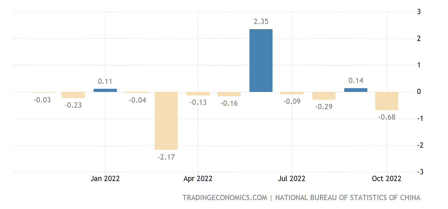 Lack of employment coupled with Zero COVID restrictions served to drive down China’s retail sales figures during November. A 0.68% decline month on month was the steepest decline since March, during the infamous Shanghai lockdown.