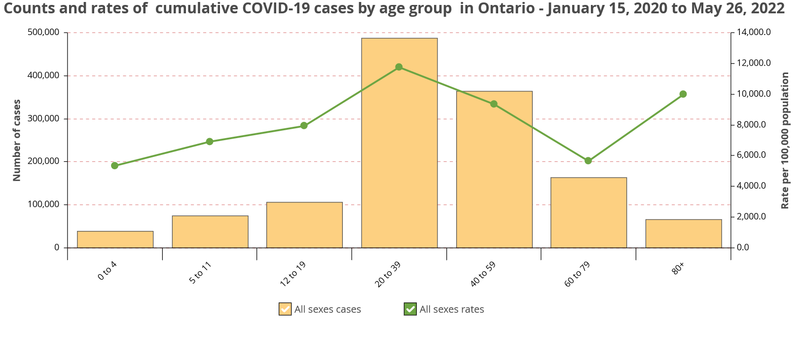 Per Public Health Ontario, children up to 4 years of age have had the fewest cases of COVID-19, and their rate of infection is the lowest of all age cohorts.