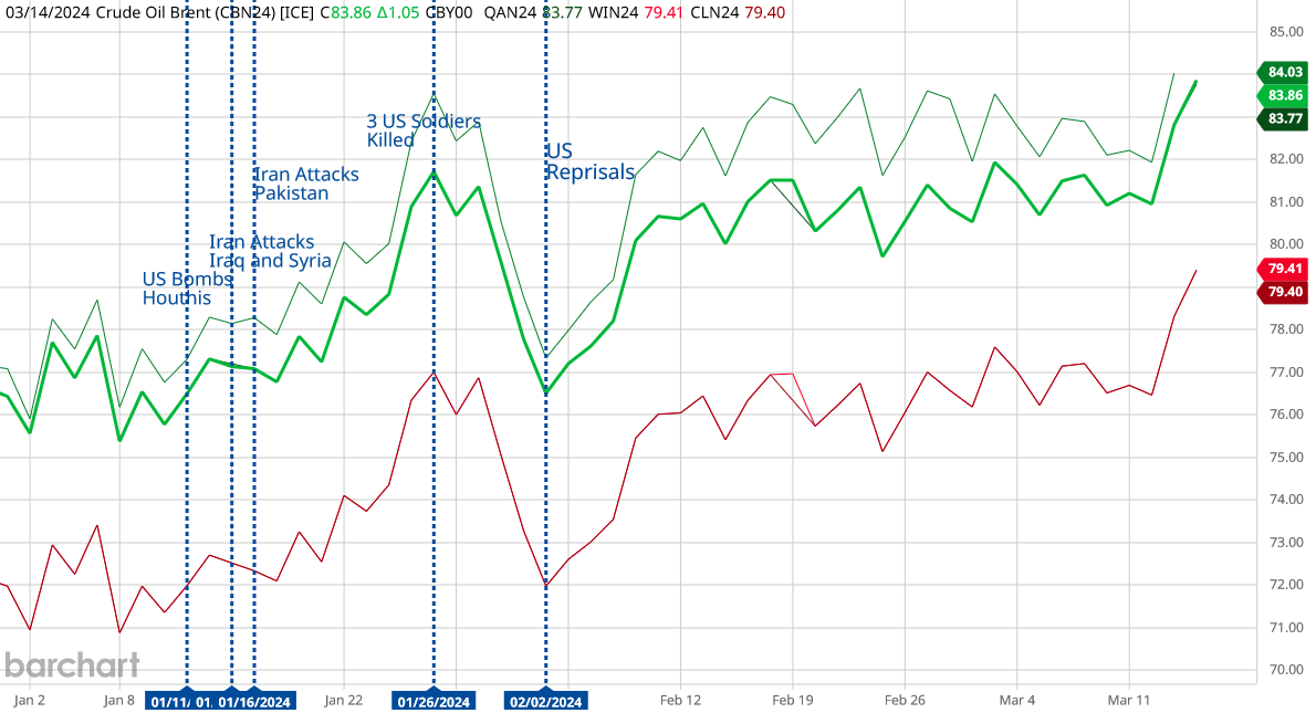 Even events in the Middle East and the conflicts between Hamas and Israel, as well as the Iranian backed missile mischief of the Houthi militias in Yemen, have only had incremental upward influence on oil prices.