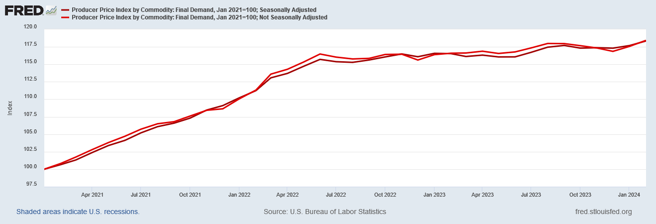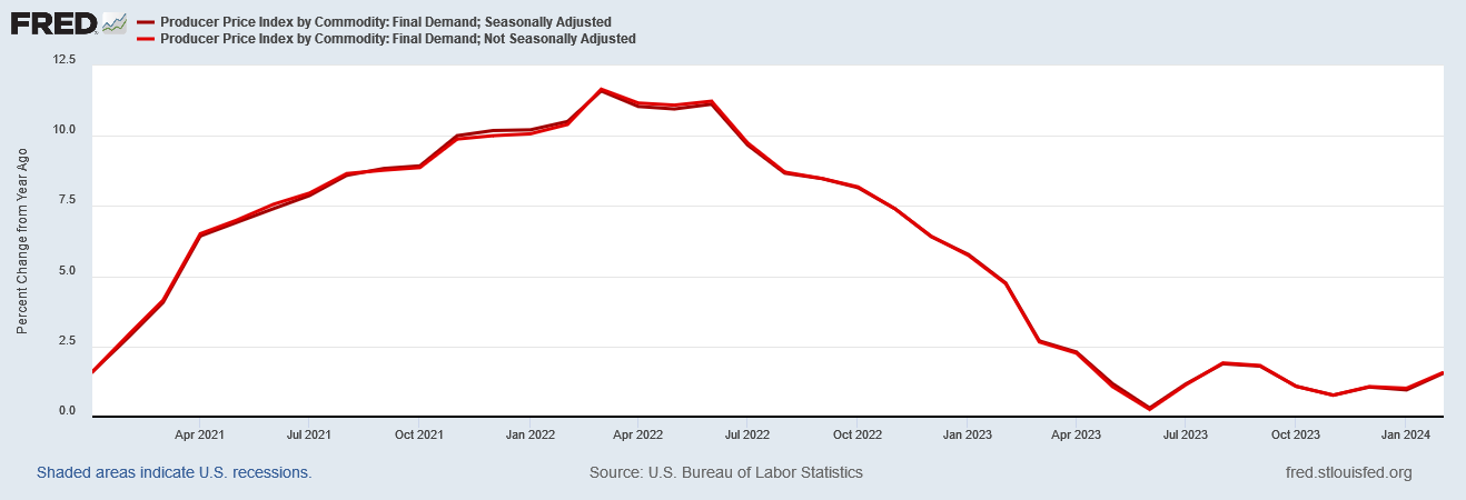 Last fall the PPI was charting near term deflation. Since the start of 2024 the PPI is charting inflation at least for the near term.