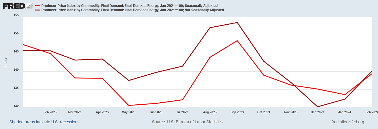 Since the start of 2024, the prevailing trend in energy prices has been energy price inflation, and that is transmitting through to the PPI as overall factory gate inflation. We should not be surprised to see that trend transmitted through to consumer price inflation over the next several months as well.
