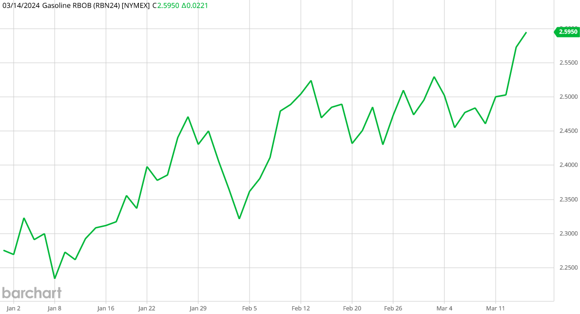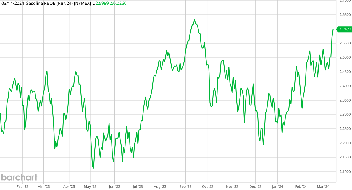 Unsurprisingly, when we look at market pricing for energy commodities such as gasoline, we are seeing rising prices for 2024.
