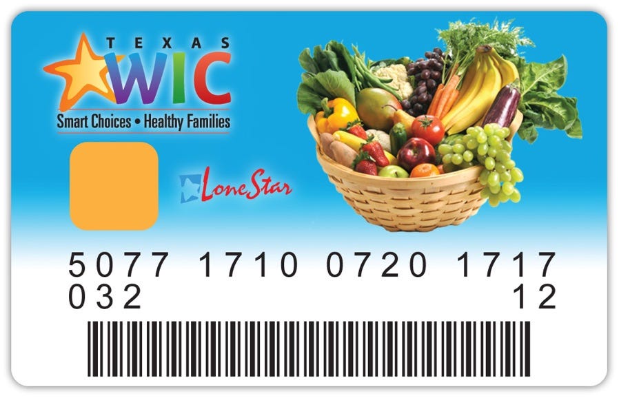 While many WIC programs use electronic cards (known as EBT cards) to disburse benefits, those cards typically lack the expiration date and CVV information that are de rigueur for credit and debit cards, as the prototypical Texas WIC card illustrates: