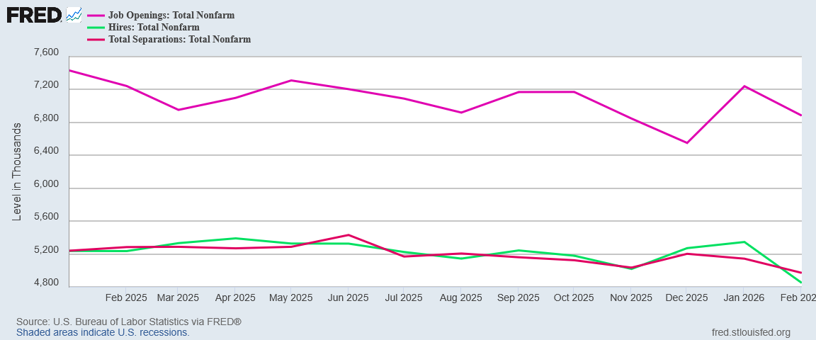 In every aspect, the February JOLTS data confirmed the worst parts of the February BLS jobs report. The JOLTS data confirmed what many people already know just from their own experiences: job markets in the United States are high on suckage and low on actual jobs.