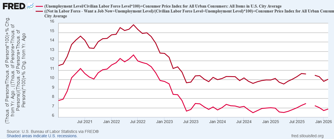 Already, if we start with “real” unemployment and add in existing year on year inflation, we get a “misery index” value that is at the same level as it was using the official unemployment rate back in 1973.