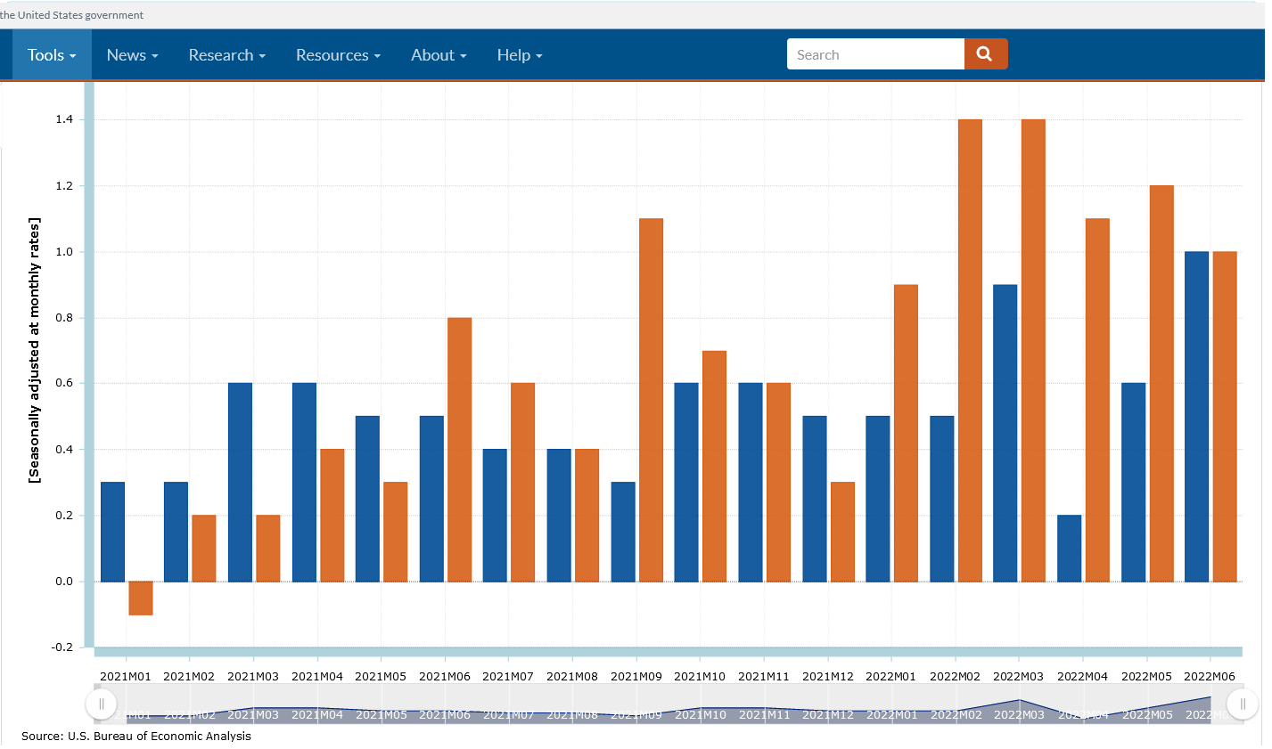 Friday the Bureau of Economic Analysis released its June Report on Personal Income and Outlays, which includes the Federal Reserve’s favorite inflation gauge, Personal Consumption Expenditures. As with the Consumer Price Index, PCE shows inflation is running rampant in this country, and that the Federal Reserve’s interest rate hikes to date have not proven effective.