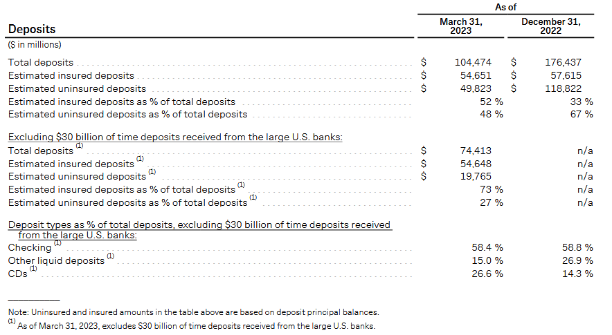 Ultimately, the existential crisis for First Republic Bank is that it has been facing a bank run, with depositors pulling out deposits at an highly accelerated rate and forcing the bank to go to great lengths—and borrow heavily from the Federal Reserve—to cover the demand for cash presented by the deposit outflows.